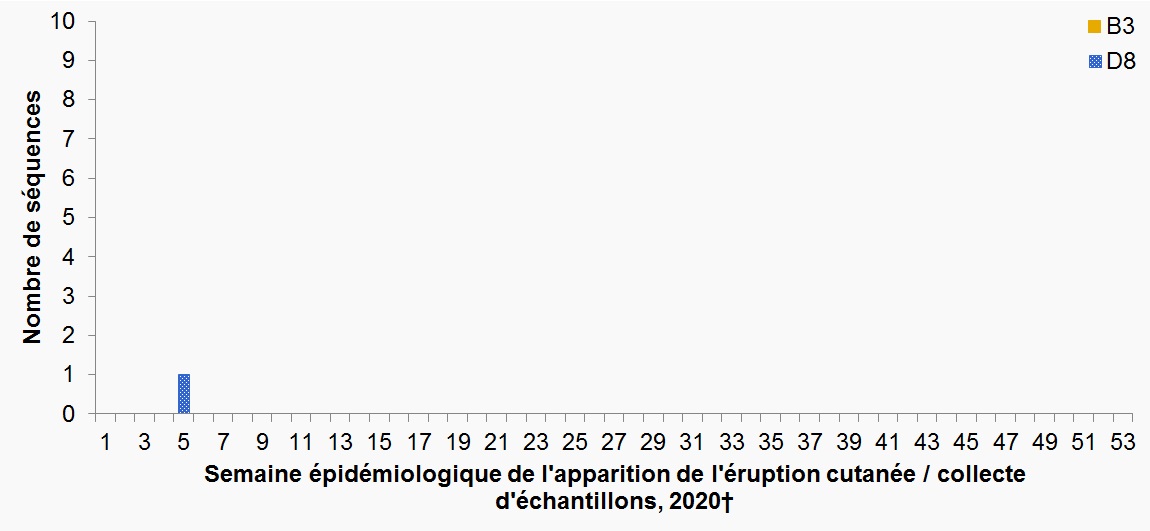 En 2020, un cas de rougeole a été génotypé et le génotype était D8.
