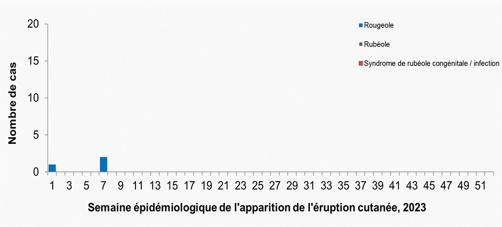 - Au Canada, aucun cas de rougeole ni de rubéole n'a été rapporté au cours de la semaine 9, 2023.