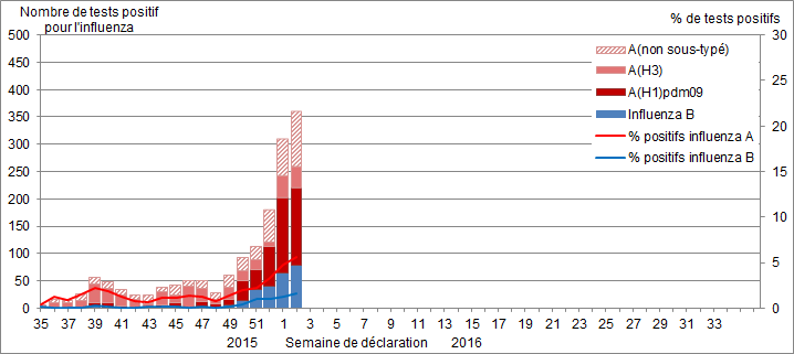 Surveillance de l'influenza : du 10 janvier 2016 au 16 janvier 2016 (semaine de déclaration 2)