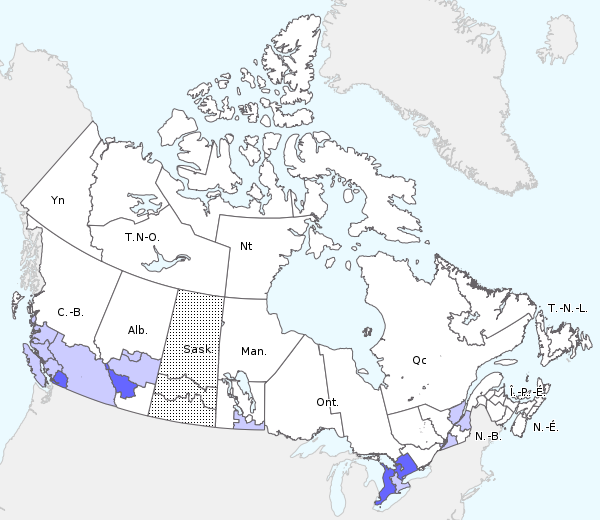 Abréviations : Terre-Neuve-et-Labrador (T.-N.-L.), Île-du-Prince-Édouard (Î.-P.É.), Nouveau-Brunswick (N.-B.), Nouvelle-Écosse (N.-É.), Québec (Qc.), Ontario (Ont.), Manitoba (Man.), Saskatchewan (Sask.), Alberta (Alb.), Colombie-Britannique (C.-B.), Yukon (Yn), Territoires du Nord-Ouest (T.N.-T.), Nunavut (Nt.).