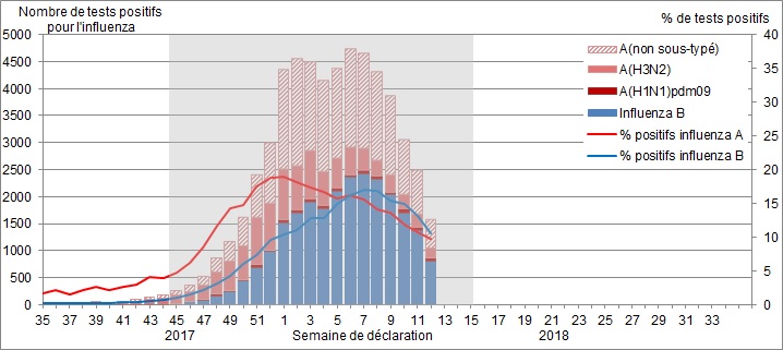 Surveillance de l'influenza : Du 18 mars au 24 mars 2018 (semaine de déclaration 12)