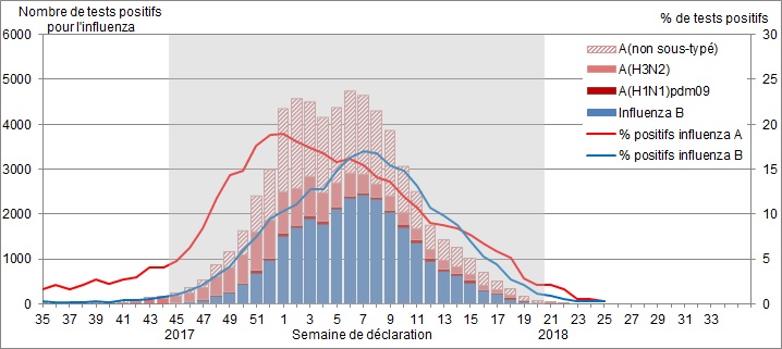 Surveillance de l'influenza : du 20 mai au 23 juin 2018 (semaine de déclaration 21-25)