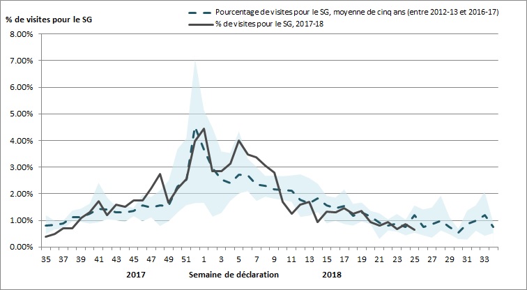 - aucune détection de l'influenza confirmée en laboratoire au cours de la semaine de déclaration; cependant, il peut y avoir des signalements sporadiques de SG