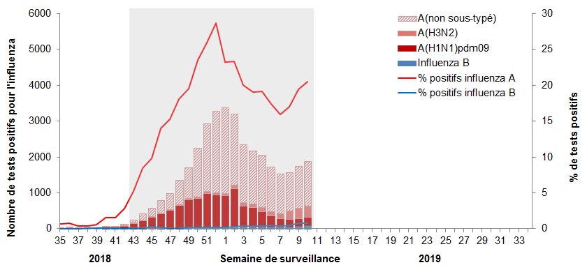 Surveillance de l'influenza : du 3 mars 2019 au 9 mars 2019 (semaine de déclaration 10)