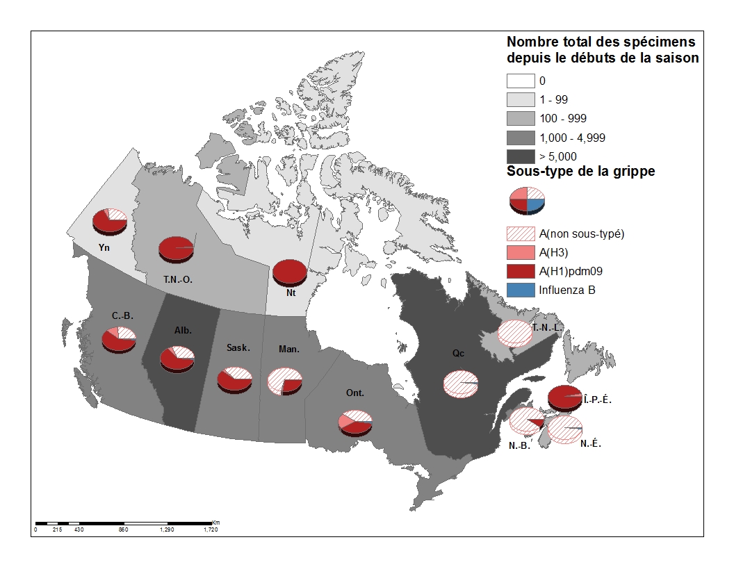 - Le virus de la grippe A(H1N1)pdm09 continue à être le sous-type prédominant, jusqu'à maintenant, cette saison.