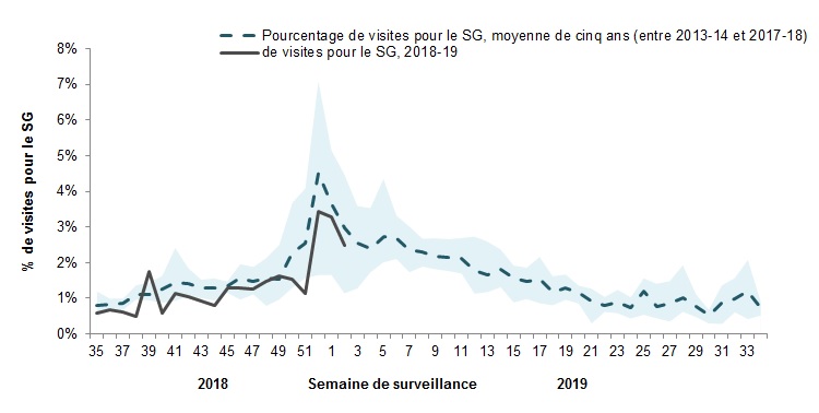 | Semaine de surveillance | 2018-19 | Moyenne | Min | Max |