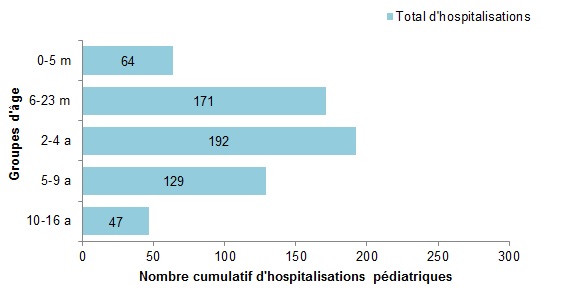 À ce jour cette saison, 603 hospitalizations pédiatriques ont été signalées (figure 8) :