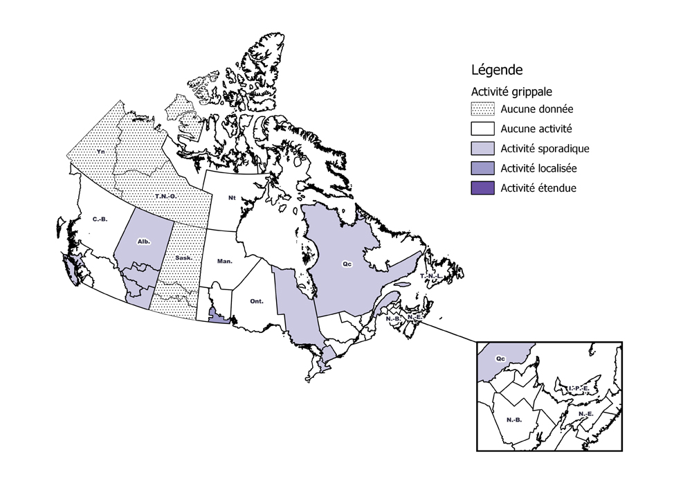 - La majorité des régions au Canada ne signalent aucune activité grippale.