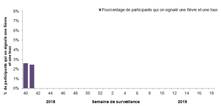 Figure 5 - Pourcentage de participants qui ont signalé de la fièvre et de la toux, Canada, semaine 2018-41