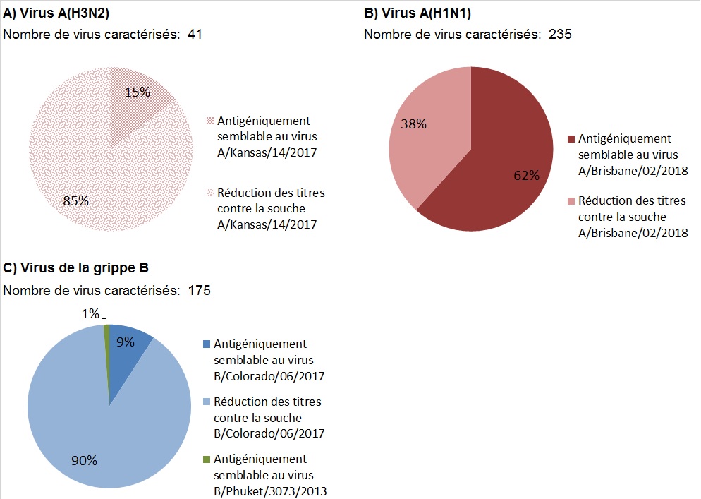 - 90 % (28 sur 31) des virus qui étaient davantage caractérisés antigéniquement..
