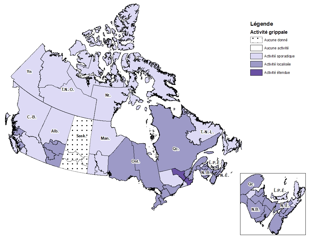 | Province | Région de surveillance de la grippe | Niveau d'activité |