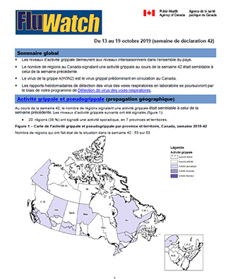 Surveillance de l'influenza : Du 13 octobre au 19 octobre 2019 (semaine de déclaration 42)