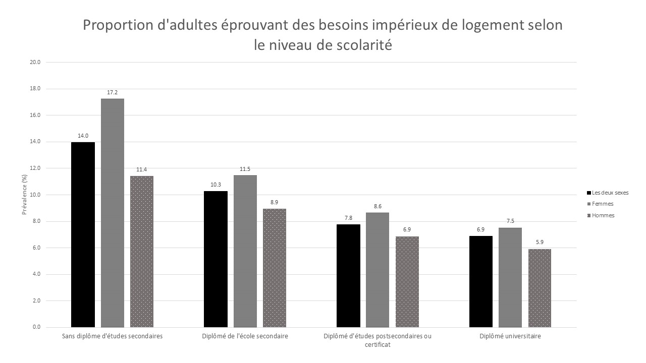 La proportion d'adultes éprouvant des besoins impérieux de logement est :