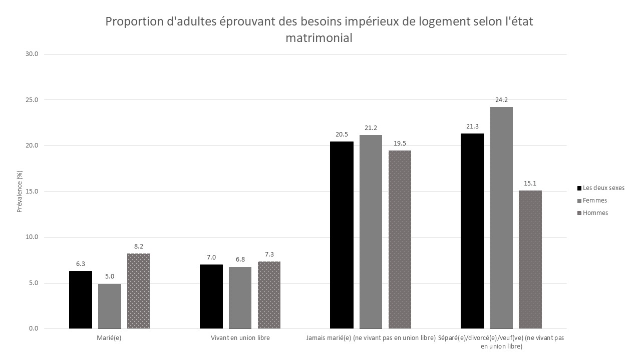 Tableau 3: Proportion d'adultes éprouvant des besoins impérieux de logement selon l'état matrimonial