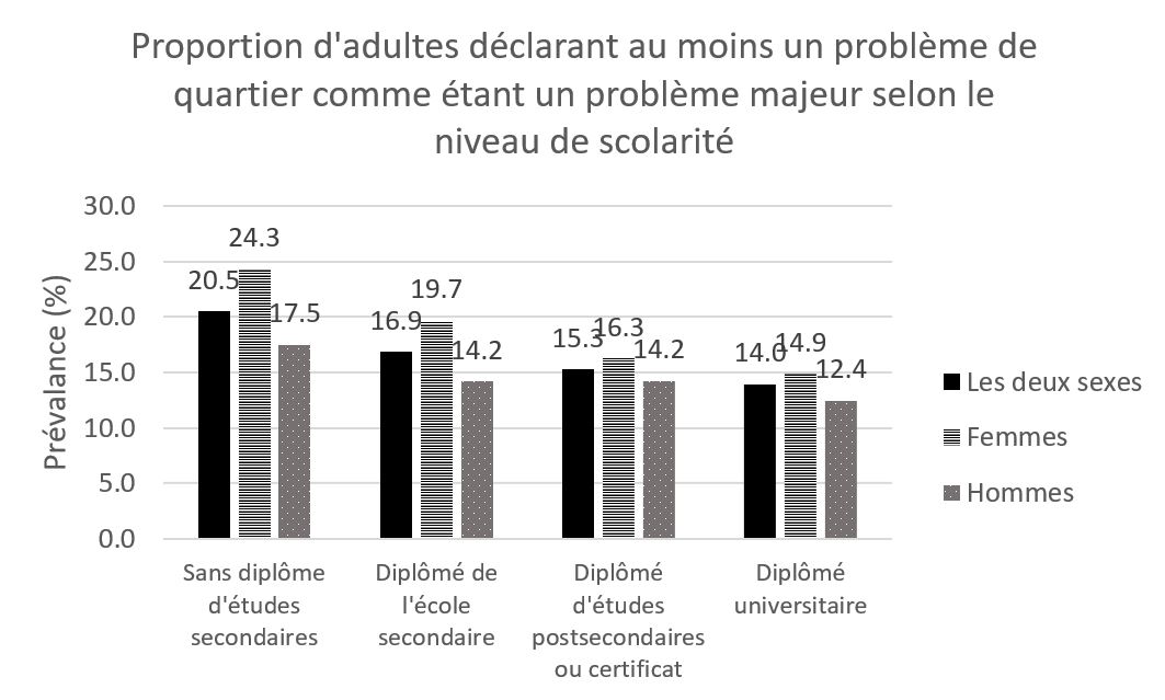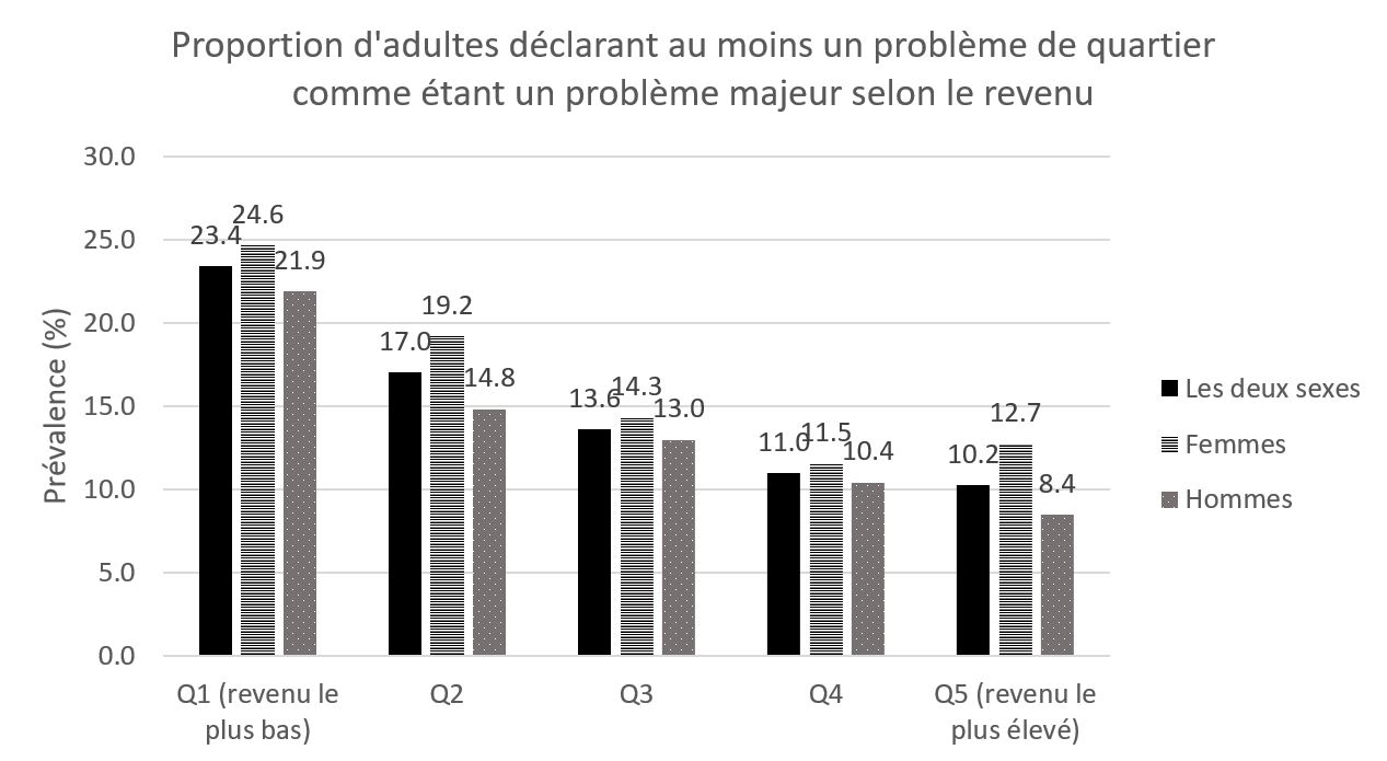 La proportion d'adultes qui ont déclaré au moins un problème de quartier comme étant un problème majeur est :