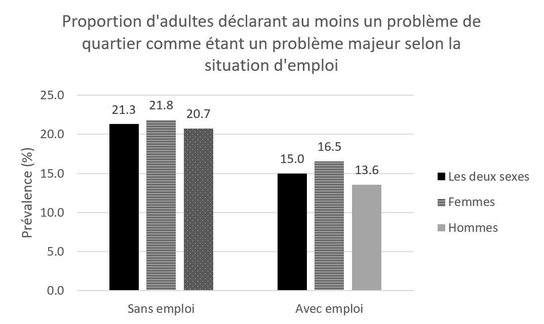 Tableau 5: Proportion d'adultes déclarant au moins un problème de quartier comme étant un problème majeur selon la situation d'emploi