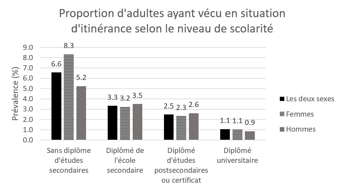 Tableau 7: Proportion d'adultes ayant vécu en situation d'itinérance selon le niveau de scolarité