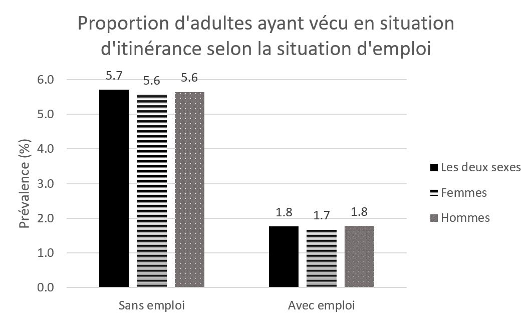 Tableau 8: Proportion d'adultes ayant vécu en situation d'itinérance selon la situation d'emploi