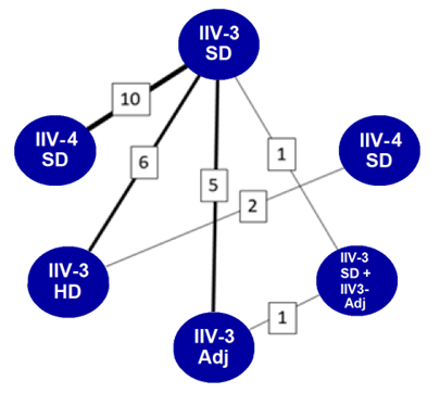 Les résultats de cette étude confirment les conclusions d'études précédentes et conduisent à une recommandation renforcée du CCNI en faveur de l'utilisation du vaccin antigrippal trivalent inactivé à haute dose à base d'œufs (VII3-HD) comme vaccin privilégié pour les Canadiens de 65 ans et plus. Par conséquent, au niveau individuel, le CCNI a recommandé que, pour les adultes plus âgés, le vaccin VII-HD soit utilisé plutôt que les vaccins antigrippaux inactivés à dose standard (VII-DS), compte tenu du fardeau de morbidité liée à la grippe A(H3N2) et des données probantes indiquant que le vaccin VII3-HD offre une meilleure protection que le vaccin VII3-DS chez les adultes de 65 ans et plus.