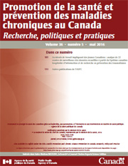 Vol 36, No 5, jmai 2016 - Promotion de la santé et prévention des maladies chroniques au Canada : Recherche, politiques et pratiques