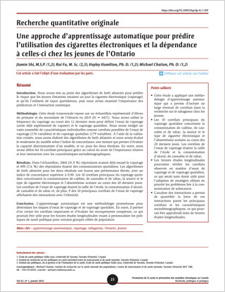 Mots clés : apprentissage automatique, vapotage, tabagisme, Ontario, jeunes