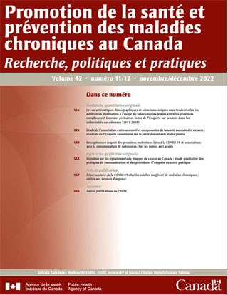 Promotion de la santé et prévention des maladies chroniques au Canada, volume 42, no 11/12, novembre/décembre 2022