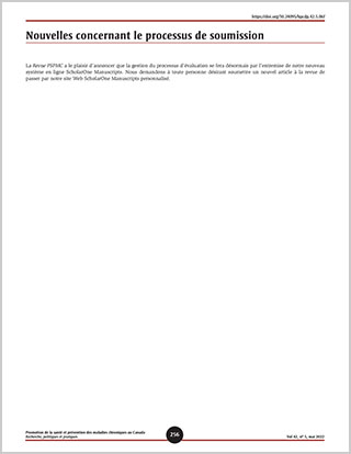 La Revue PSPMC a le plaisir d’annoncer que la gestion du processus d’évaluation se fera désormais par l’entremise de notre nouveau système en ligne ScholarOne Manuscripts. Nous demandons à toute personne désirant soumettre un nouvel article à la revue de passer par notre site Web ScholarOne Manuscripts personnalisé.