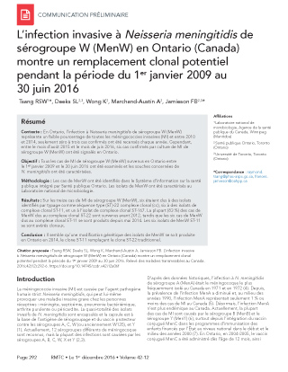 L’infection invasive à Neisseria meningitidis de sérogroupe W (MenW) en Ontario (Canada) montre un remplacement clonal potentiel pendant la période du 1er janvier 2009 au 30 juin 2016
