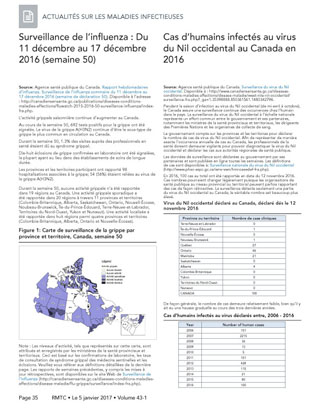 Source: Agence santé publique du Canada. Rapport hebdomadaires d'influenza. Surveillance de l'influenza sommaire du 11 décembre au 17 décembre 2016 (semaine de déclaration 50).