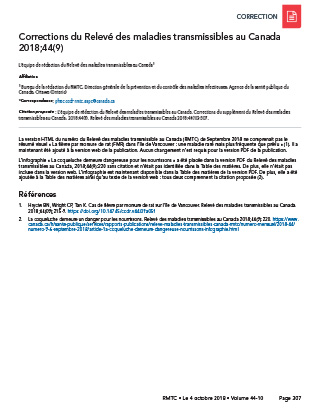 Corrections du Relevé des maladies transmissibles au Canada 2018;44(9)
