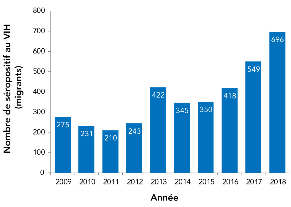 | Année | Nombre de séropositif au VIH (migrants) |