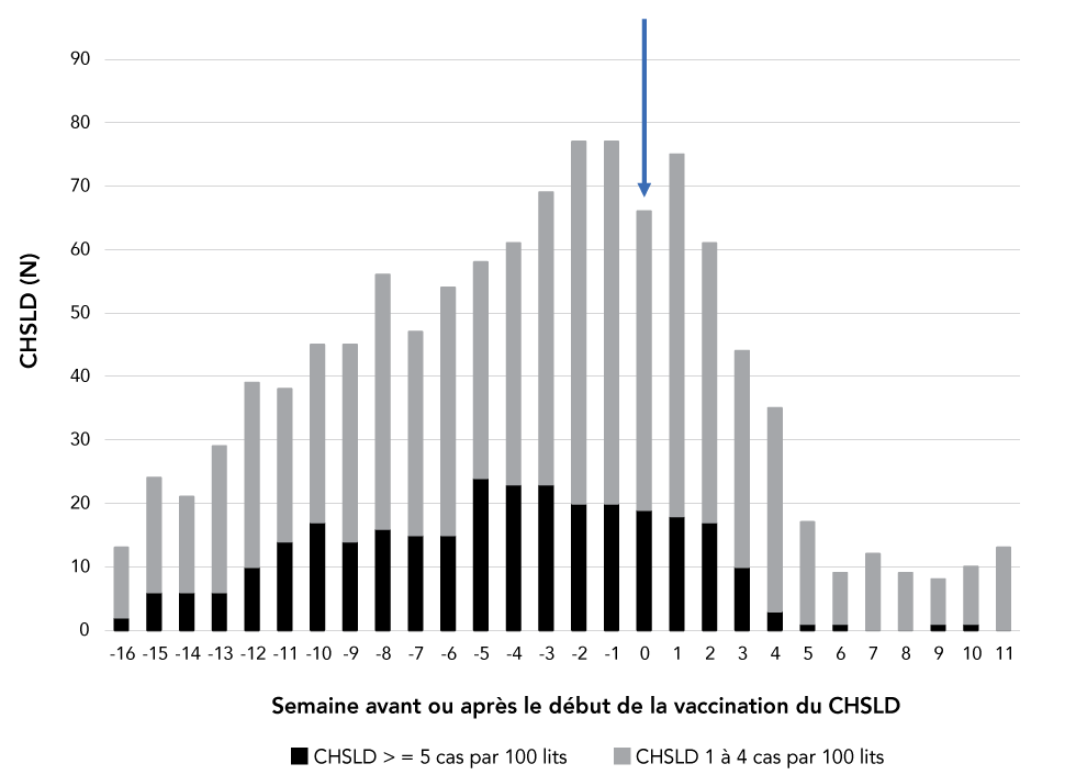 Impact de la première dose de vaccin sur la COVID-19 et ses complications, dans les Centres d’hébergement et de soins de longue durée et les résidences privées pour aînés du Québec, Canada