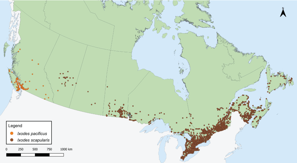 Wilson CH, Gasmi S, Bourgeois A-C, Badcock J, Chahil N, Kulkarni MA, Lee M-K, Lindsay LR, Leighton PA, Morshed MG, Smolarchuk C, Koffi JK. Surveillance des tiques Ixodes scapularis et Ixodes pacificus et de leurs agents pathogènes associés au Canada, 2019. Relevé des maladies transmissibles au Canada 2022;48(5):233–44. https://doi.org/10.14745/ccdr.v48i05a04f