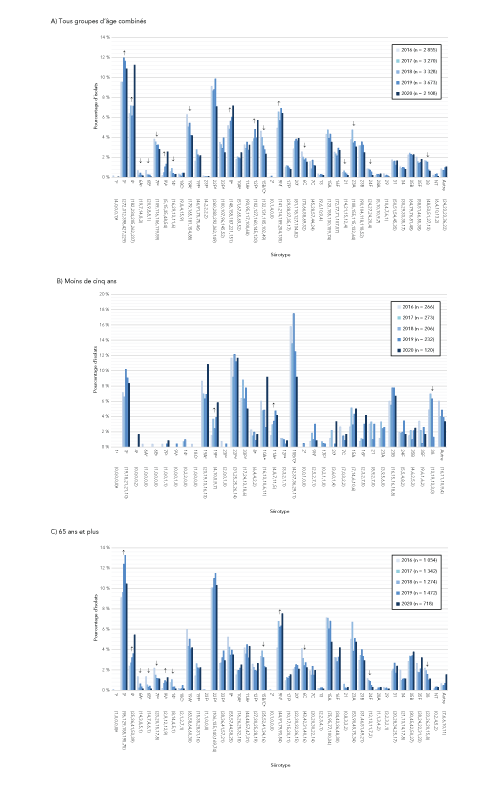 Figure 2 : Tendances de la prévalence des sérotypes invasifs de Streptococcus pneumoniae par âge, 2016 à 2020Figure 1 footnote aFigure 1 footnote b