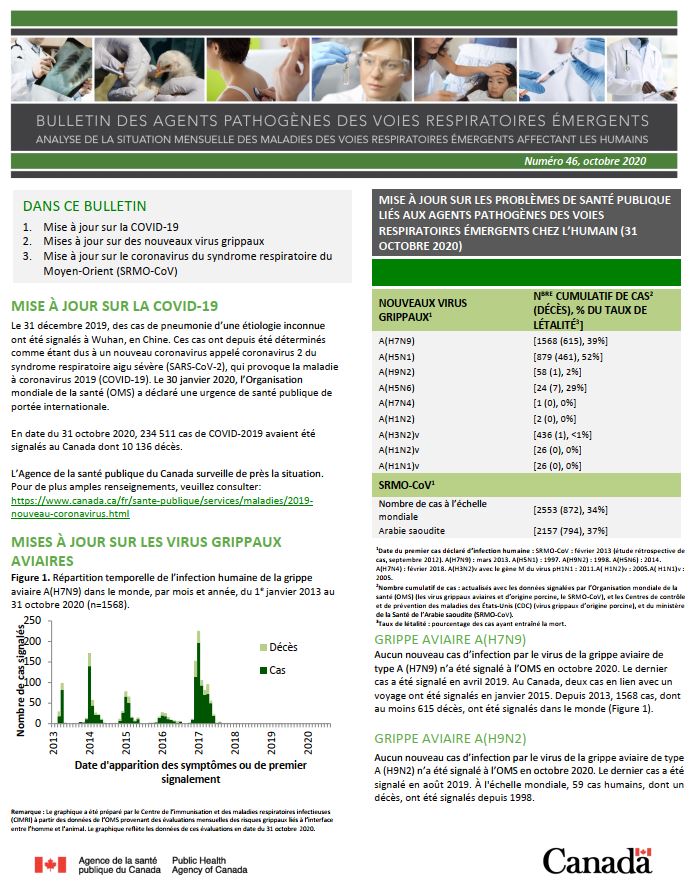 Bulletin des agents pathogènes des voies respiratoires émergents: Numéro 46, octobre 2020
