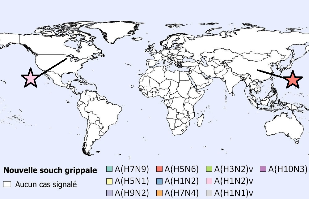 - Six cas de A(H5N6) ont été signalés en Chine.