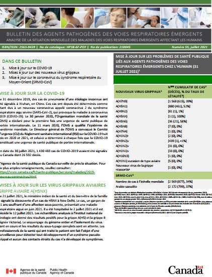 Bulletin des agents pathogènes des voies respiratoires émergents: Numéro 55, juillet 2021
