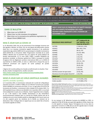 Analyse de la situation mensuelle des maladies des voies respiratoires émergentes affectant les humains (à la date du 30 novembre 2021)