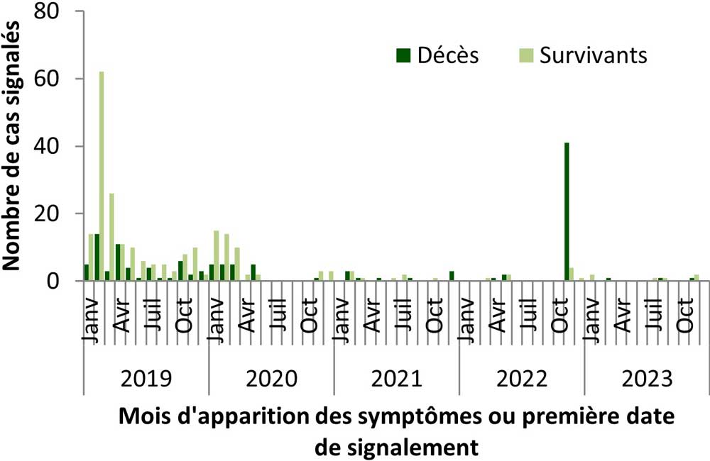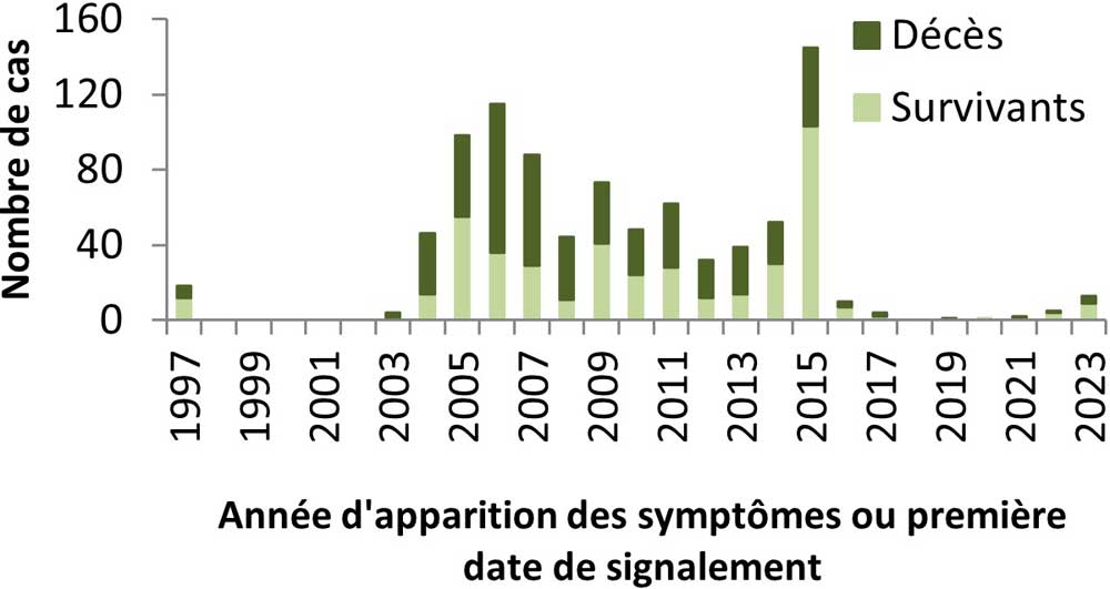 | Année | Nombre de cas | Décès | Survivant |