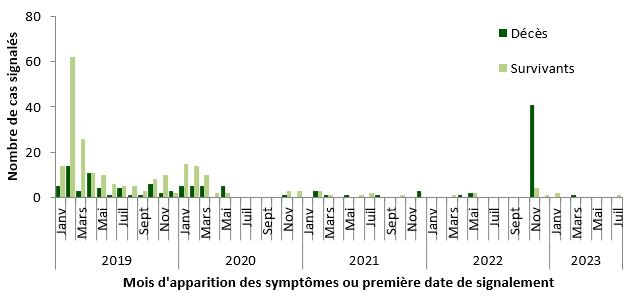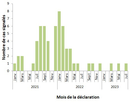 Au cours du mois de juillet 2023, les cas humains suivants ont été signalés :