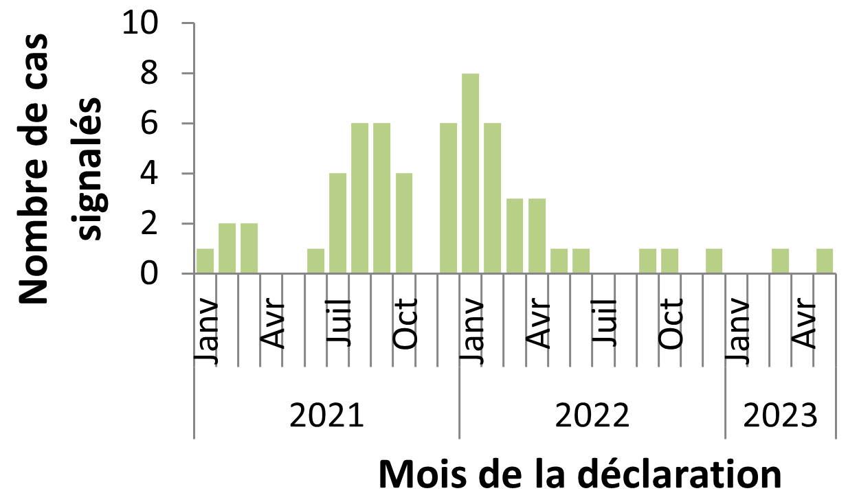 Au cours du mois de mai 2023, les cas humains suivants ont été signalés :