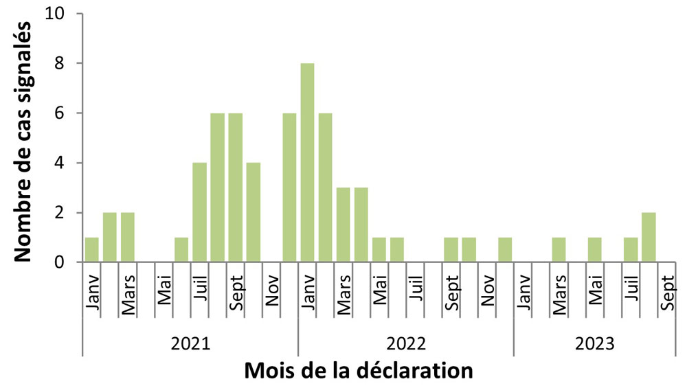 Au cours du mois de septembre 2023, les cas humains suivants ont été signalés :