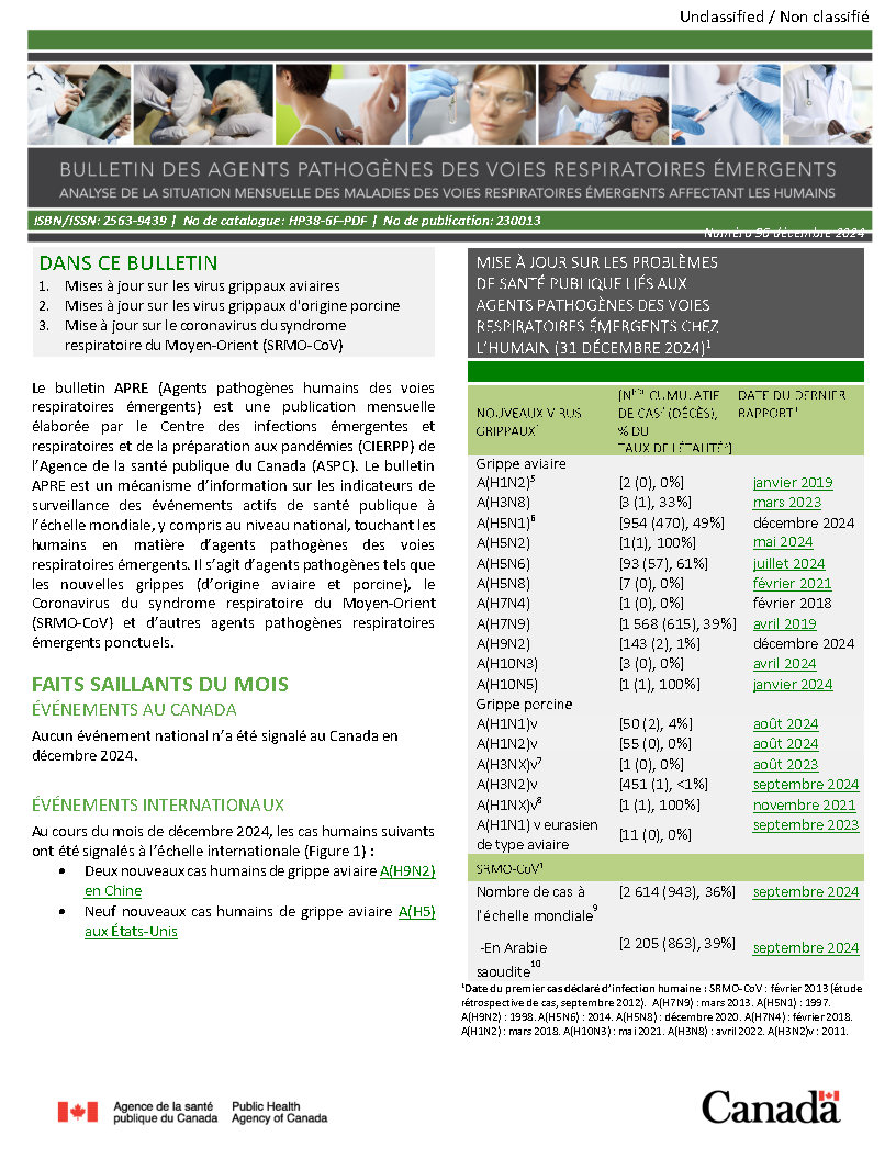 A (H5N1)Note de bas de page 6 | 954 | 470 | 49 % | décembre 2024 |