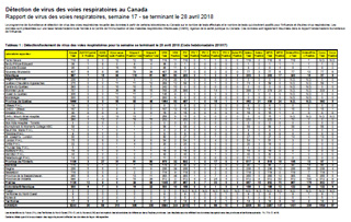 Rapport de virus des voies respiratoires, semaine 17 - se terminant le 28 avril 2018