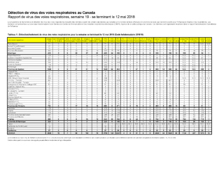 Tableau 1 : Détection/isolement de virus des voies respiratoires pour la semaine se terminant le 12 mai 2018 (Code hebdomadaire 201819)