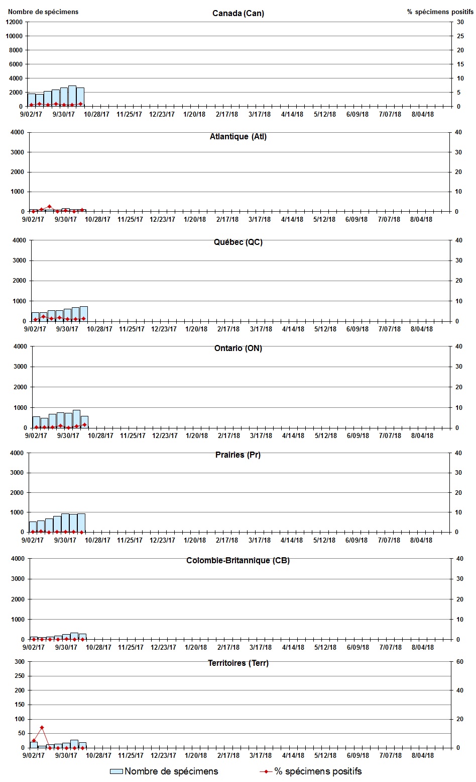 | Semaine | Fin de la semaine | Canada Tests | Entéro/rhino % |