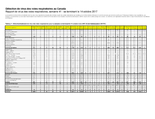 Tableau 1 : Détection/isolement de virus des voies respiratoires pour la semaine se terminant le 14 octobre 2017 (Code hebdomadaire 201741)