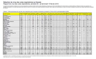 Tableau 1 : Détection/isolement de virus des voies respiratoires pour la semaine se terminant le 10 février 2018 (Code hebdomadaire 201806)