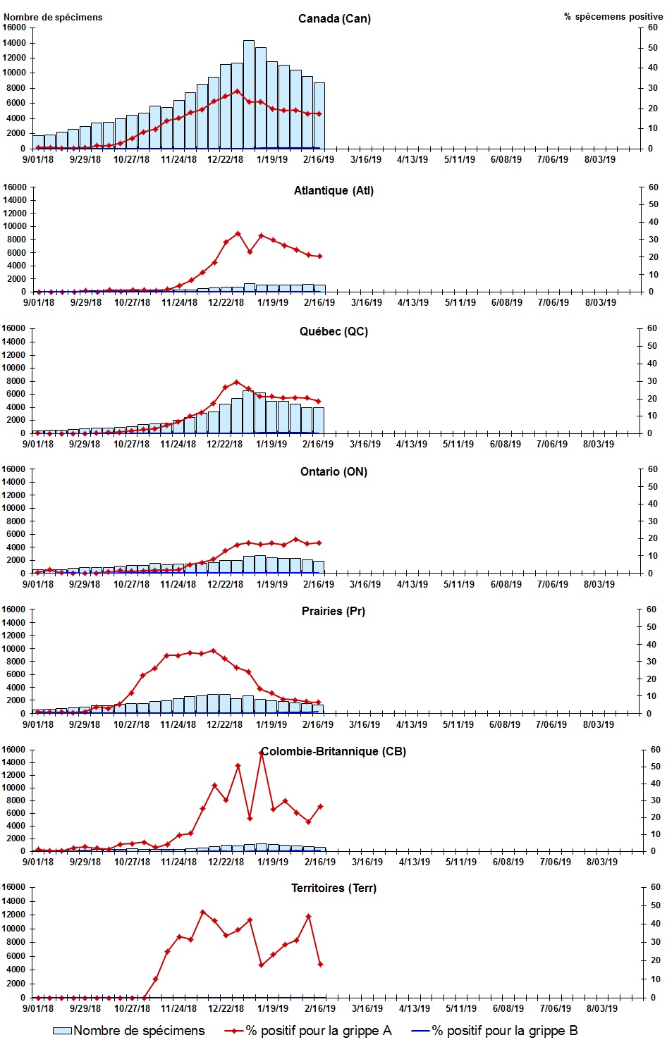 | Province de Québec | 3941 | 0 | 0 | 734 | 734 | 10 | 3599 | 511 | 609 | 0 | 1 | 9 | 0 | 0 | 611 | 23 | 579 | 24 | N.D. | N.D. | 567 | 23 |