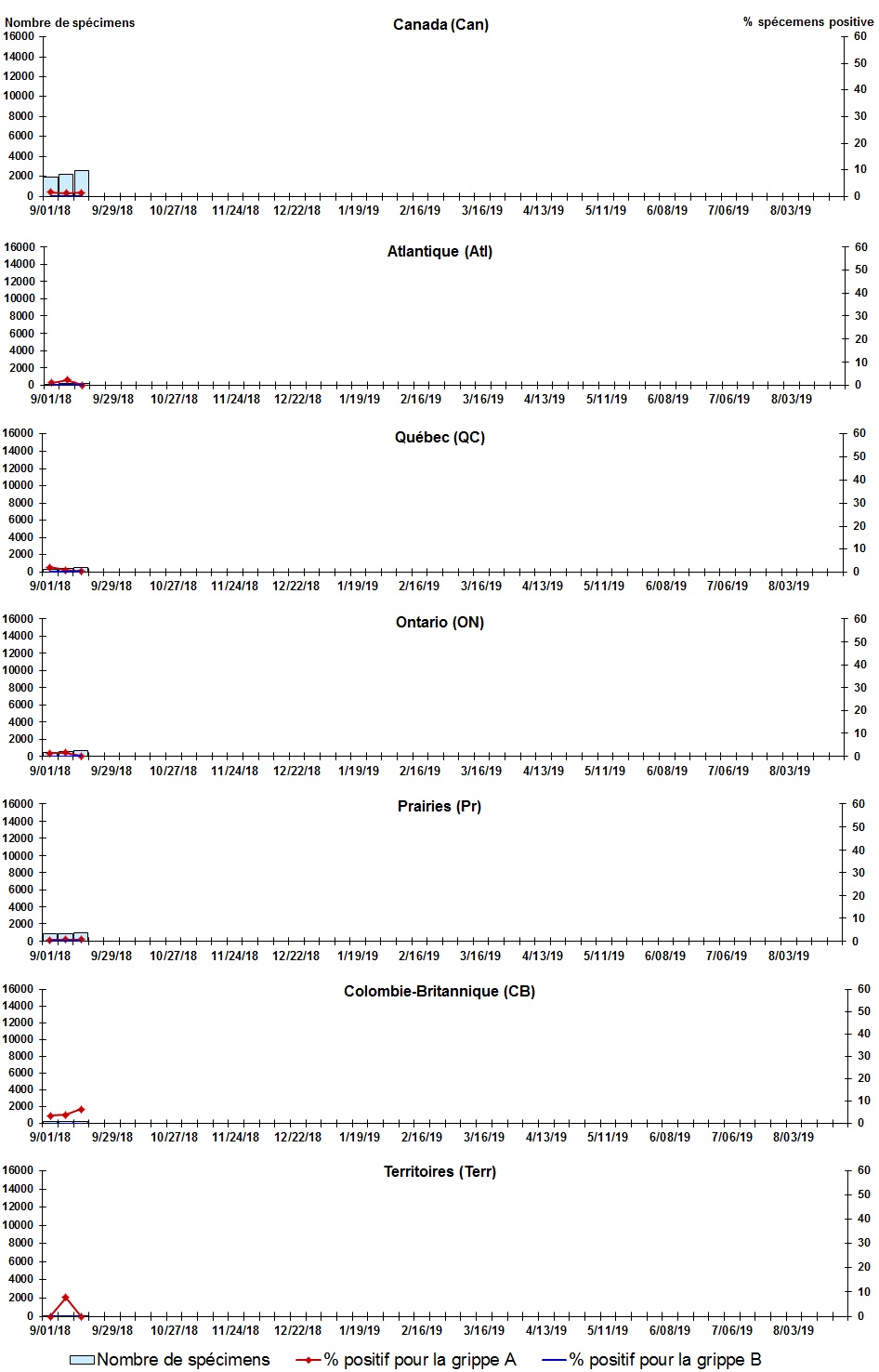 | Montérégie | 51 | 0 | 0 | 0 | 0 | 1 | 51 | 0 | 0 | 0 | 0 | 0 | 0 | 0 | 0 | 0 | 0 | 0 | N.D. | N.D. | 0 | 0 |